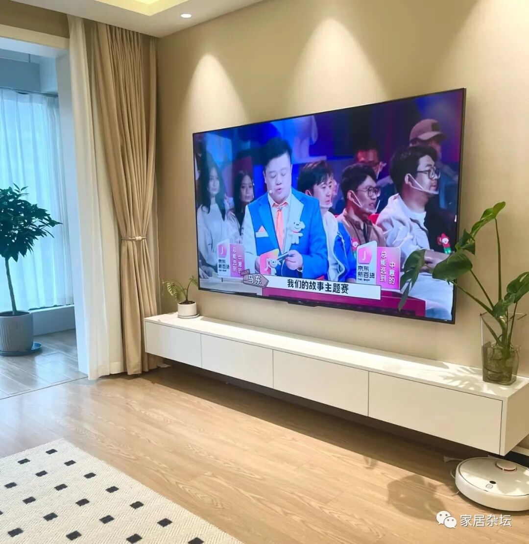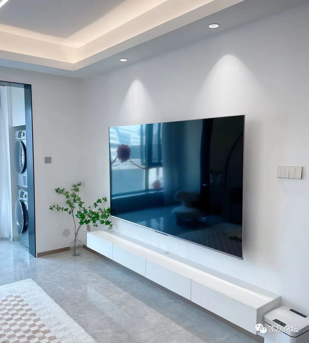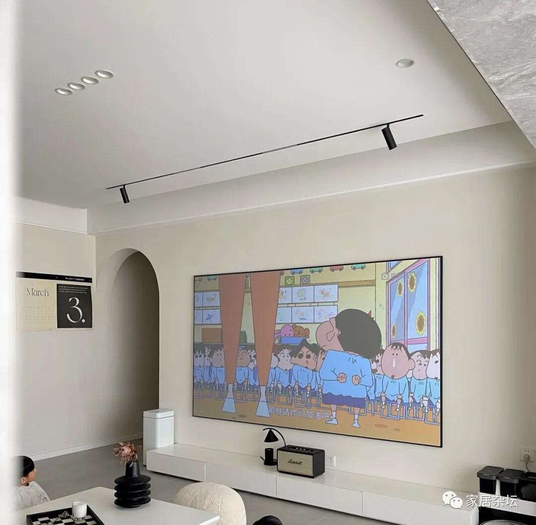①、如果是年轻人居住的房屋装修,建议大家放弃电视。还不如安装个投影仪,即使什么都不装装,去客厅化也很不错。