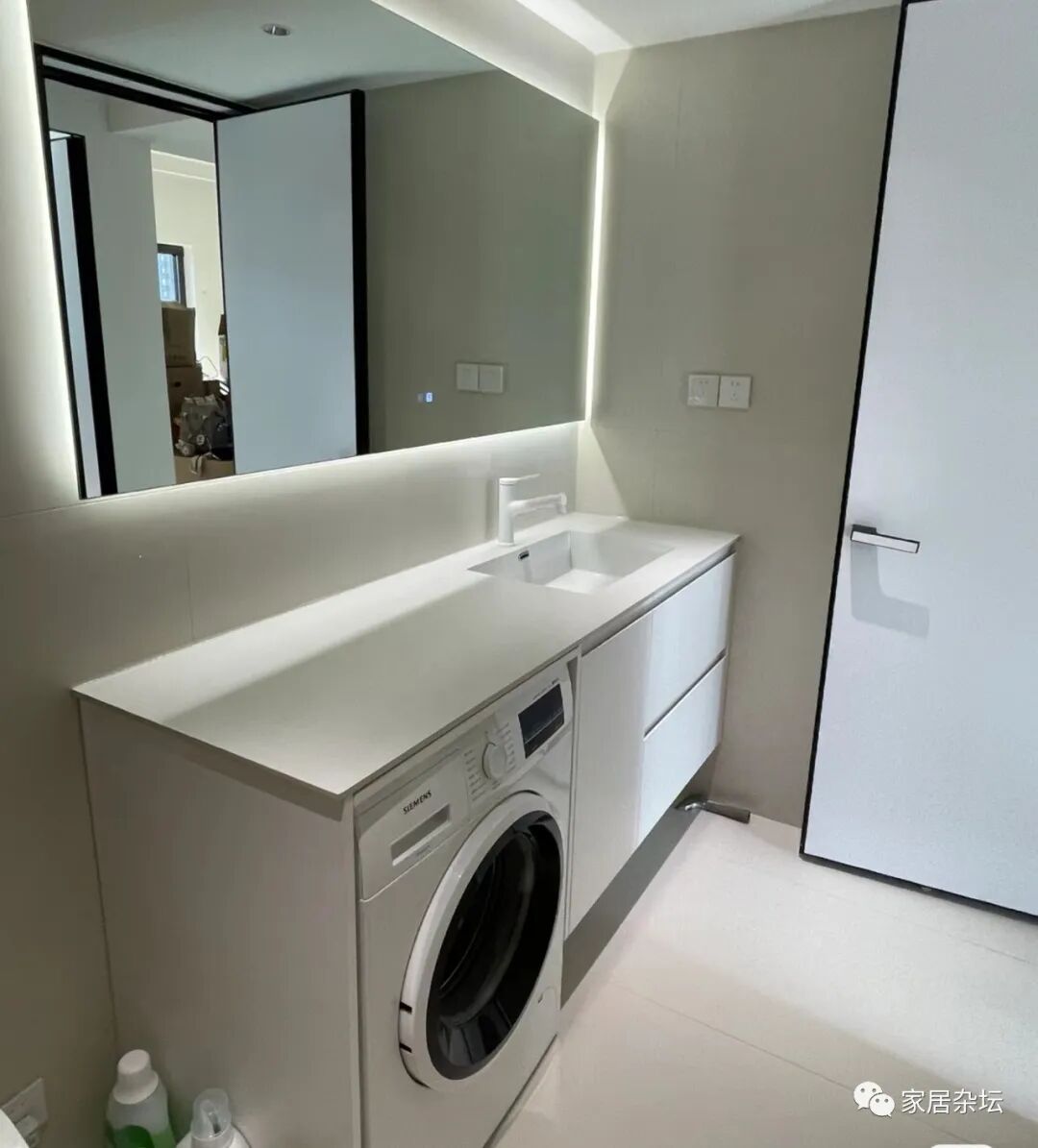 ①、对于洗衣机,建议大家选择常规的洗衣机。我们可以做嵌入式的做法,这样就可以节省空间,记得一定要选择方便移动的洗衣机。