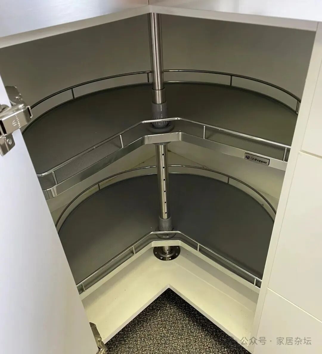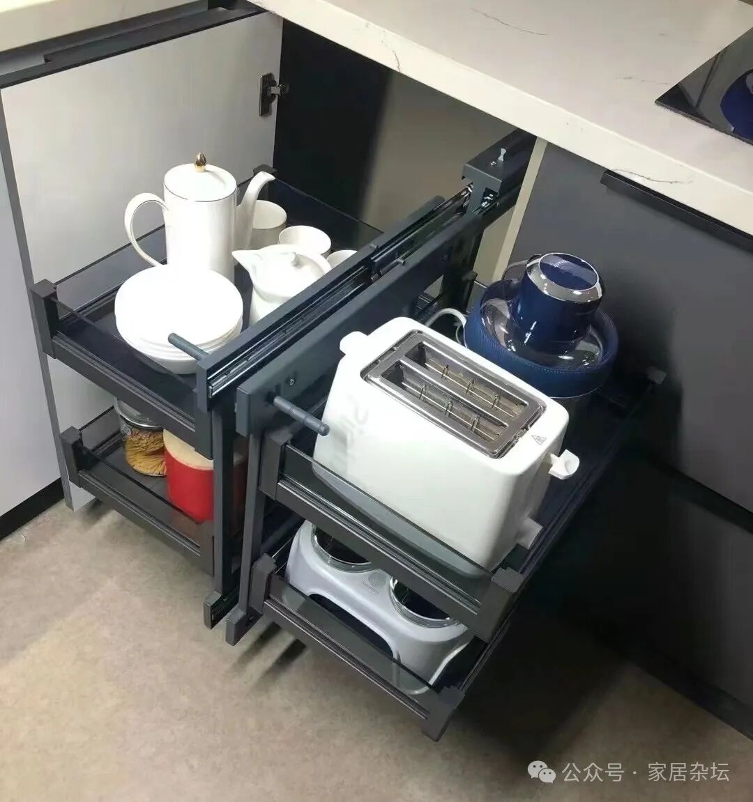 ①、对于转角物质的五金,无论是转角转盘还是拉篮之类的,都尽量选择好一些的,千万不要买那些几十块钱的廉价的产品。