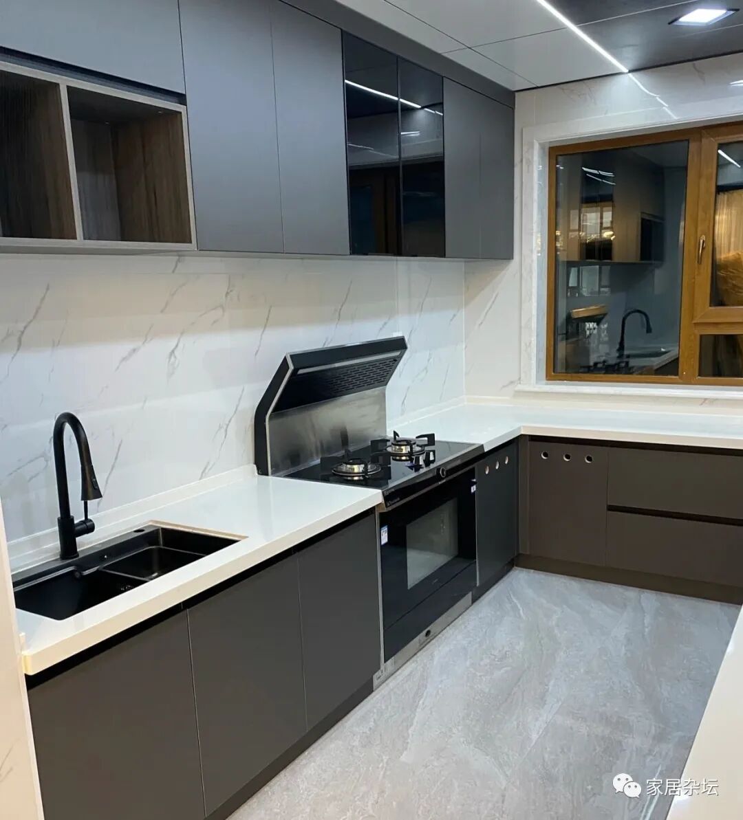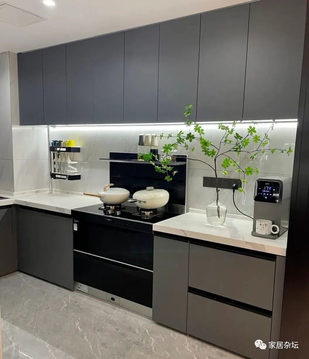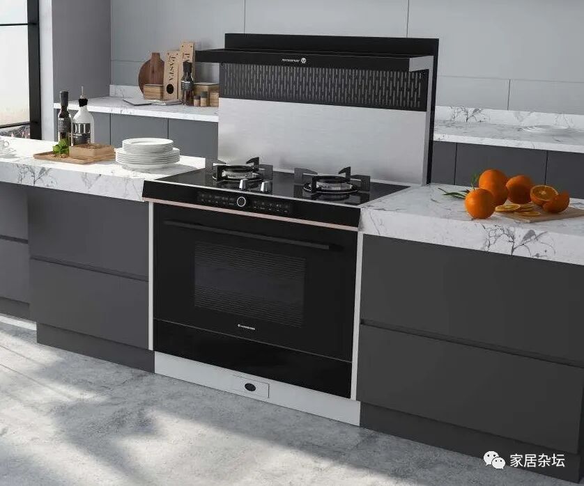 ②、像目前我们所常见的集成灶集成的功能还是比较多的。比如集成灶集成了灶具,油烟机,橱柜,消毒柜,烤箱等一系列的功能于一体。这样就相当于在这个小的空间内实现了多种的功能,这样就避免我们在厨房安装其他的一些电器时造成空间的紧凑。所以小空间使用集成灶真的是非常不错的。因为集成灶的烟道是往下走的,不会占用上部空间,灶具的上边我们可以安装橱柜,实现更多的储物空间。