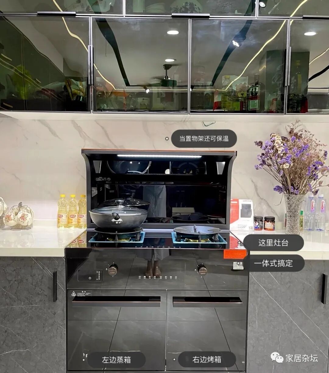 ②、像我们传统的油烟机,灶具或者是烤箱都要分别操作。有的时候可能就是开了以后忘了关灯等。而集成灶就不会存在这种手忙脚乱的问题。因为集成灶几乎所有的功能都集成一体,像我们打开灶具以后油烟机就会启动。灶具关闭以后,油烟机就会延时关闭等等。另外集成灶还有很多智能功能,可以进行人机交流,选择定时开关等等,非常的省心。像我们担心的忘记关火的问题,其实集成灶都给大家解决了。