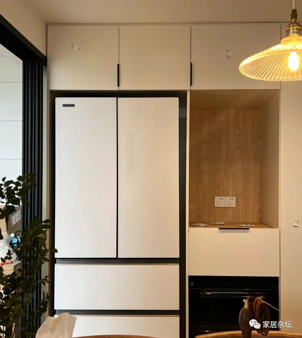 上边对开门,下边抽屉的冰箱的样式就是并没有另外两种样式好看。因为它的上部是一个整体,下部是三个抽屉,可能对于部分朋友来说不能接受,所以选择时候要去看一眼实物。