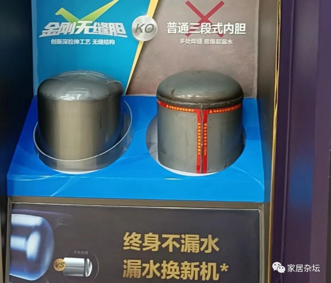 选购热水器时,第五点建议大家:选金刚无缝内胆,不选普通内胆。