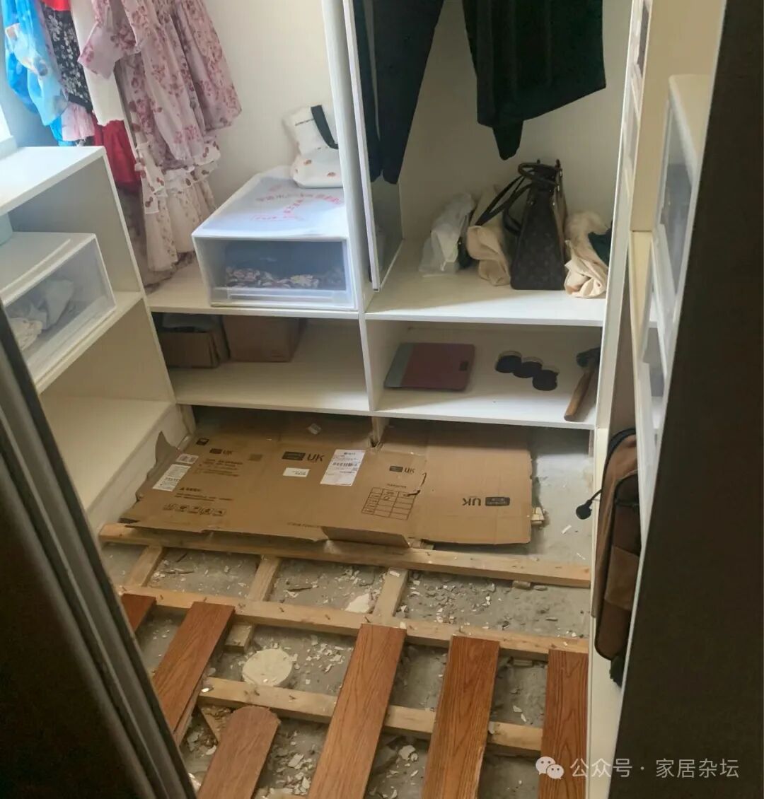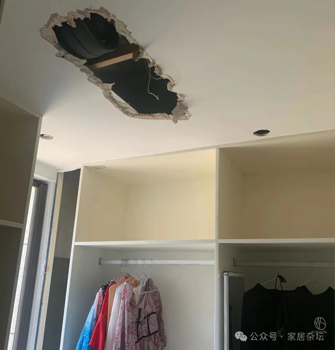 把卫生间改成衣帽间以后,出现了第二个问题,就是漏水的问题。
