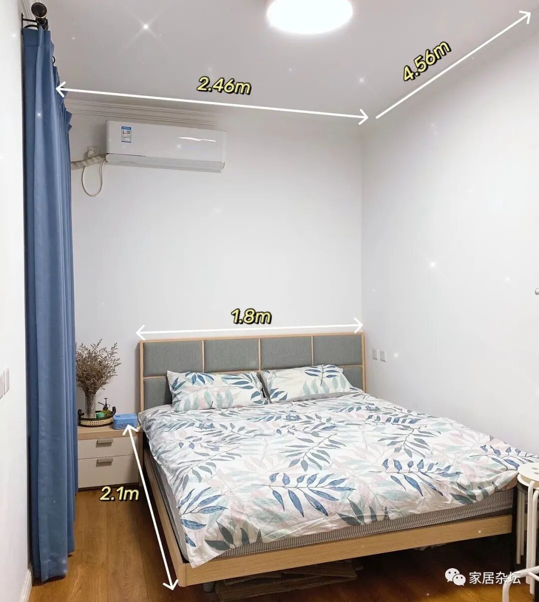 1.8m×2m的大床,放在尺寸小的小卧室里,第一个问题就是:占地方。