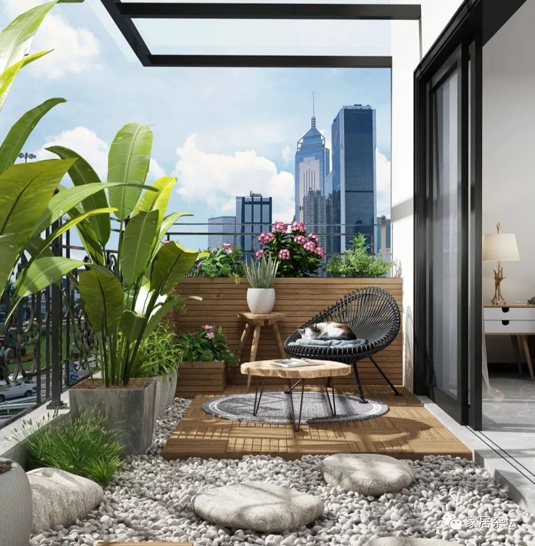 ①、阳台与室外联通,让我们有随时可以融入。例如搬个凳子坐在阳台上,就可以感受到新鲜的空气,感受自然的气息。