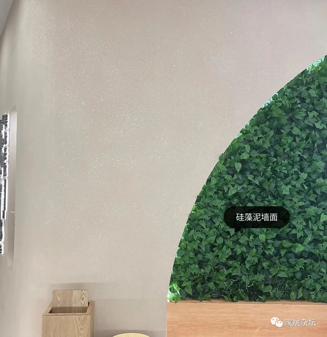 ①、硅藻泥的墙面,具有吸附功能。宣传说是像活性碳一样,可以吸附游离的甲醛,净化室内的空气,相对于其他墙面材料更环保。