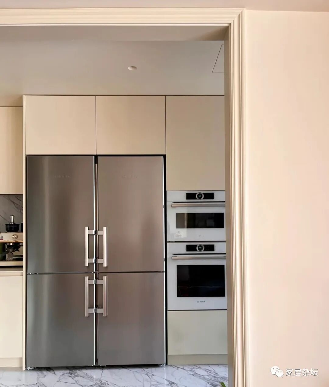 嵌入式冰箱,就是整体嵌入的柜体里面,显得更加的一体、整洁。