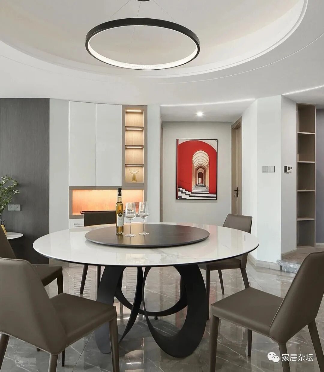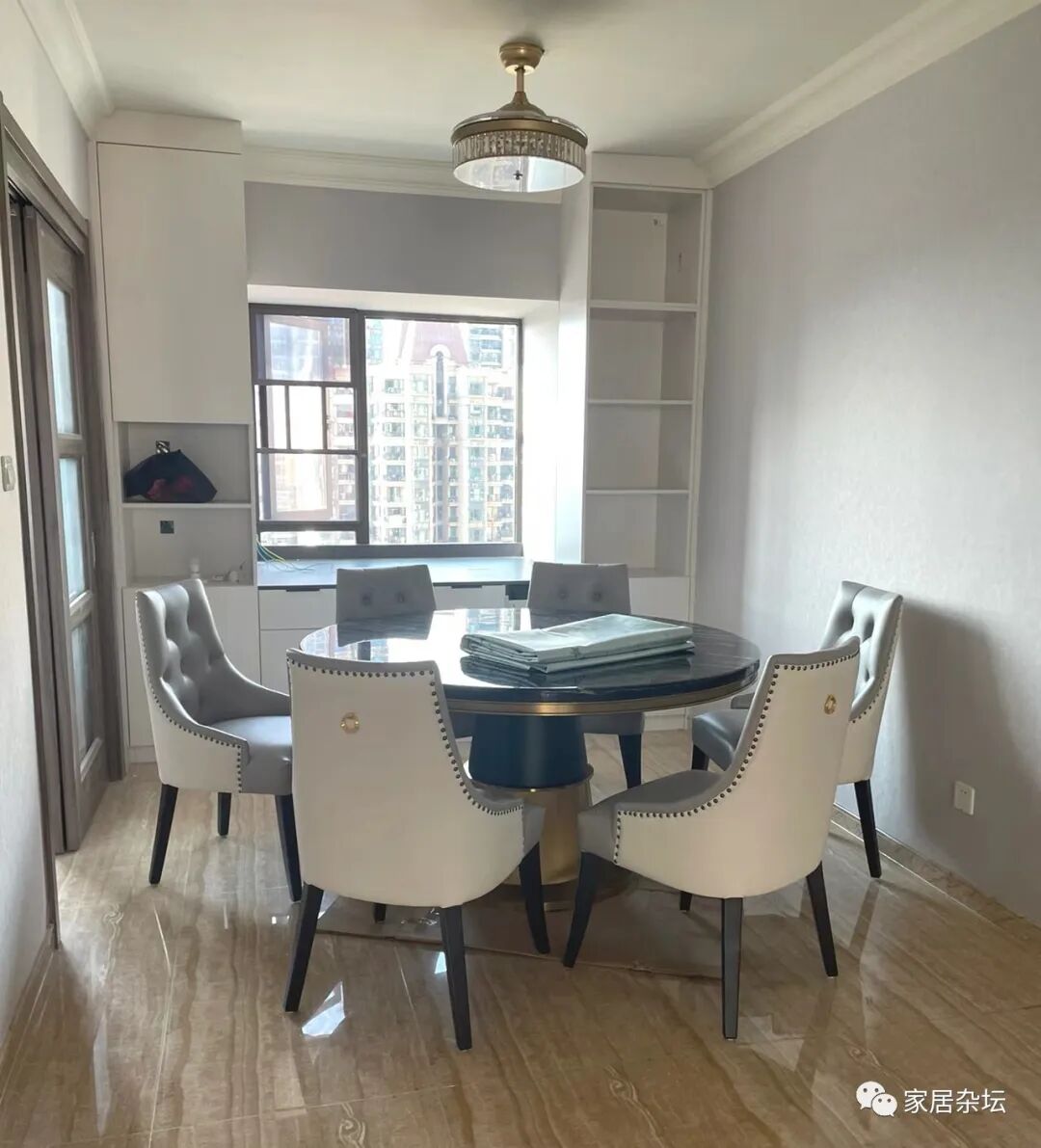 ②、不好用。虽然有些超大户型,放个圆形大餐桌也没有什么问题。但是你会发现,很不好用,平时一两口人吃饭,摆的菜都够不着。