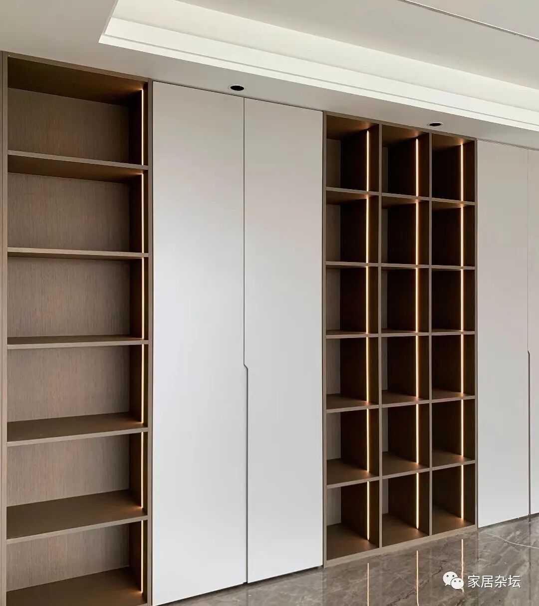 ①、对于家中的柜子,个人首先给出观点就是尽量做成封闭的。橱柜衣柜或者是酒柜,这样既实用而且不容易积灰。
