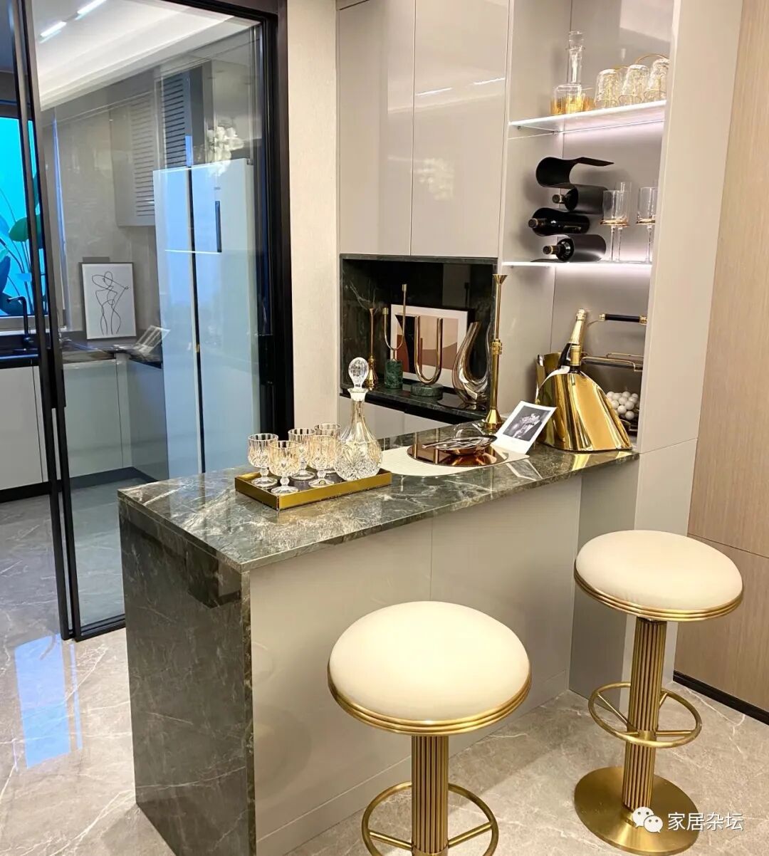 大多数人幻想着家里有个吧台。平时可以坐在吧台上,喝酒聊天,感觉非常惬意。