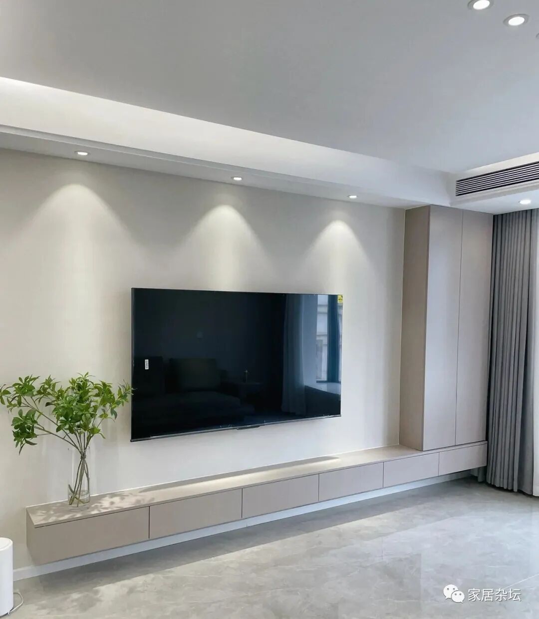 ②、如果我们打算做些墙面装饰,那么建议大家直接安装饰面板,而不要做格栅造型。这样与乳胶漆墙面相区分,效果也不错。