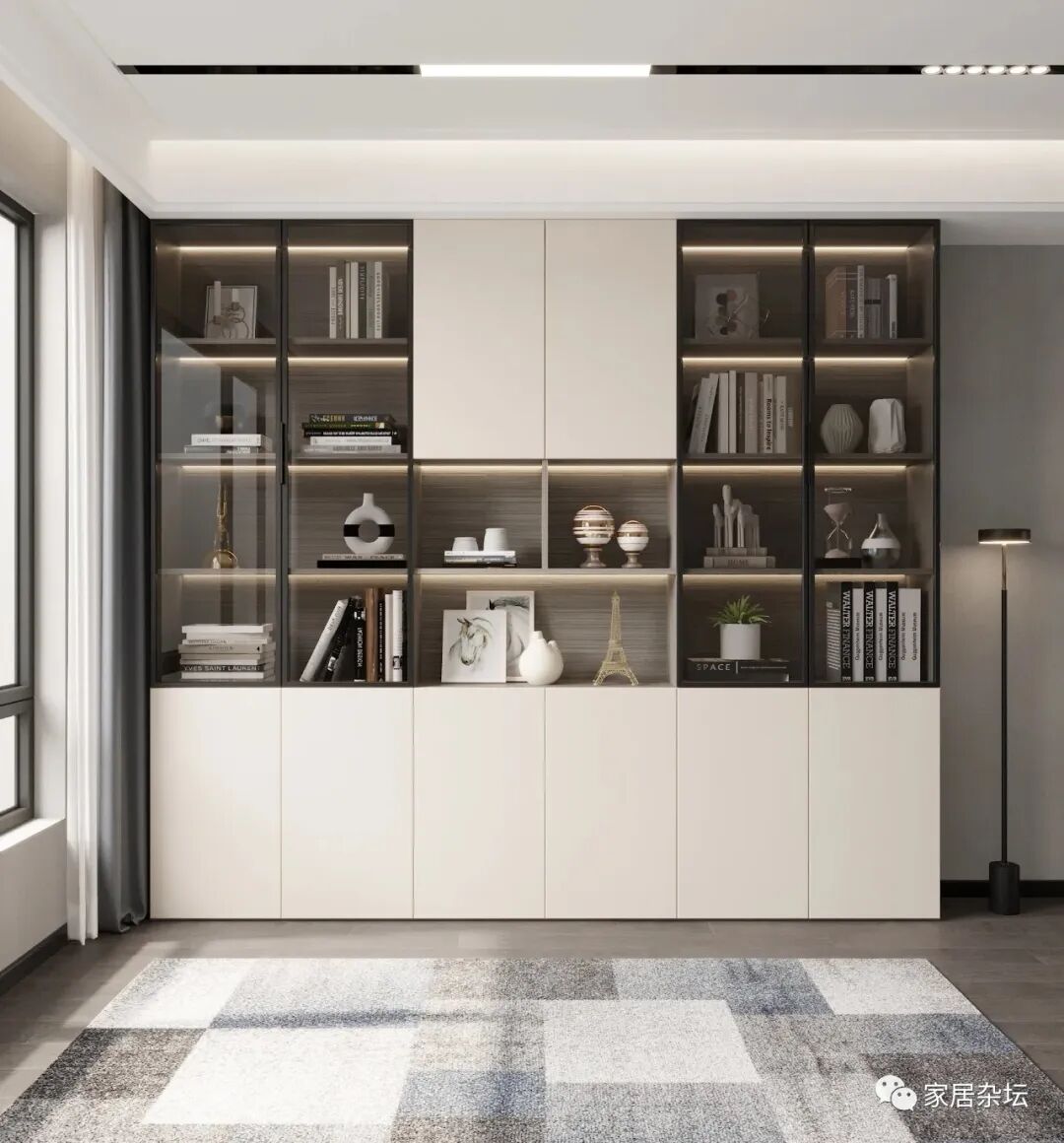 ①、对于书柜,可以少留一些开放格。例如留三四个开放格,方面打理,而且好看。
