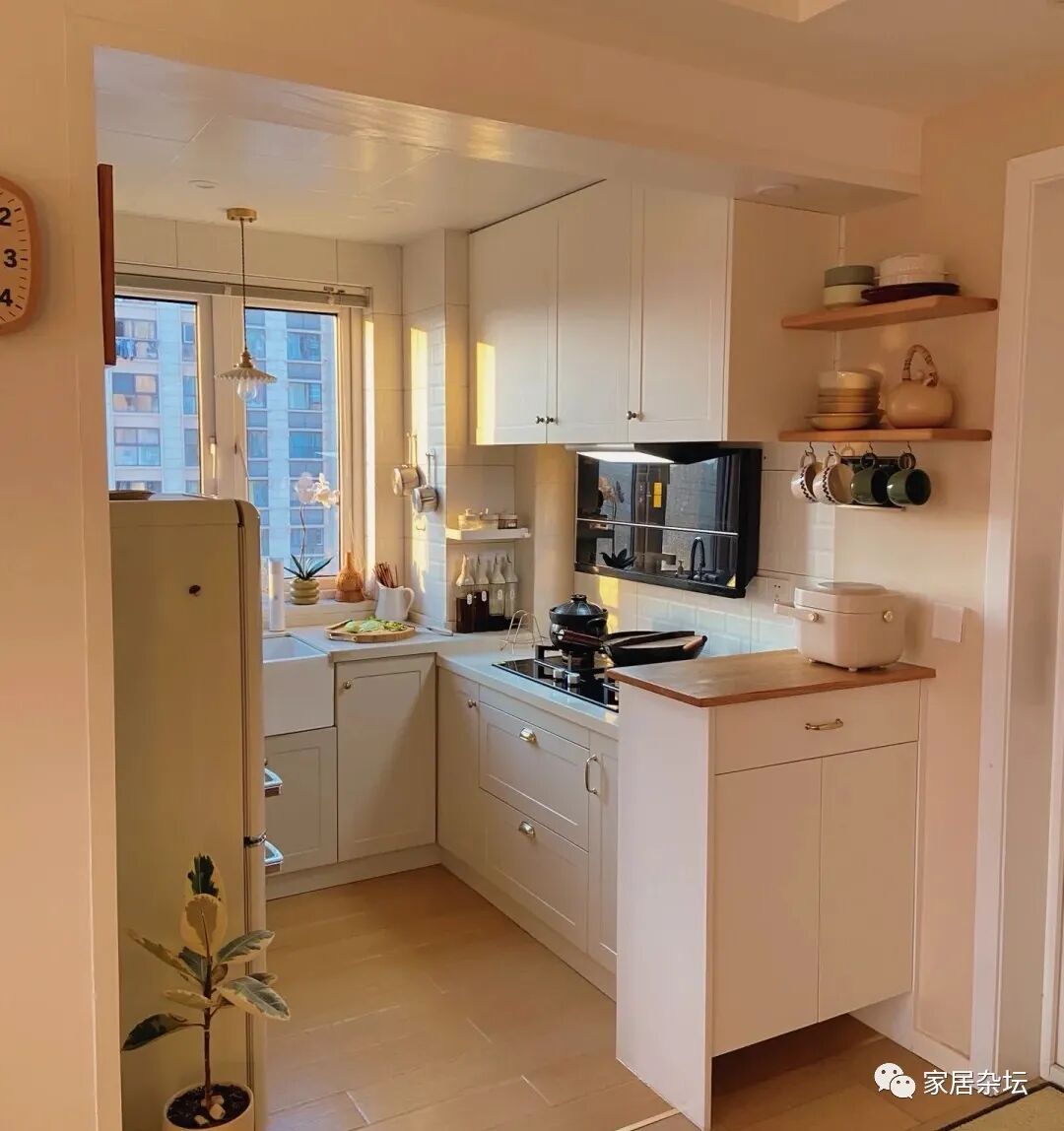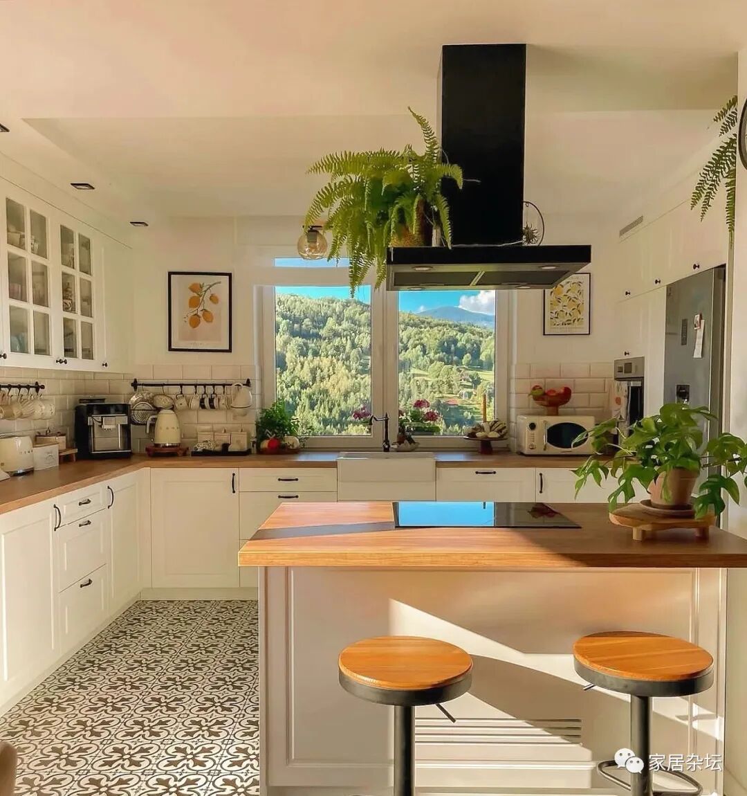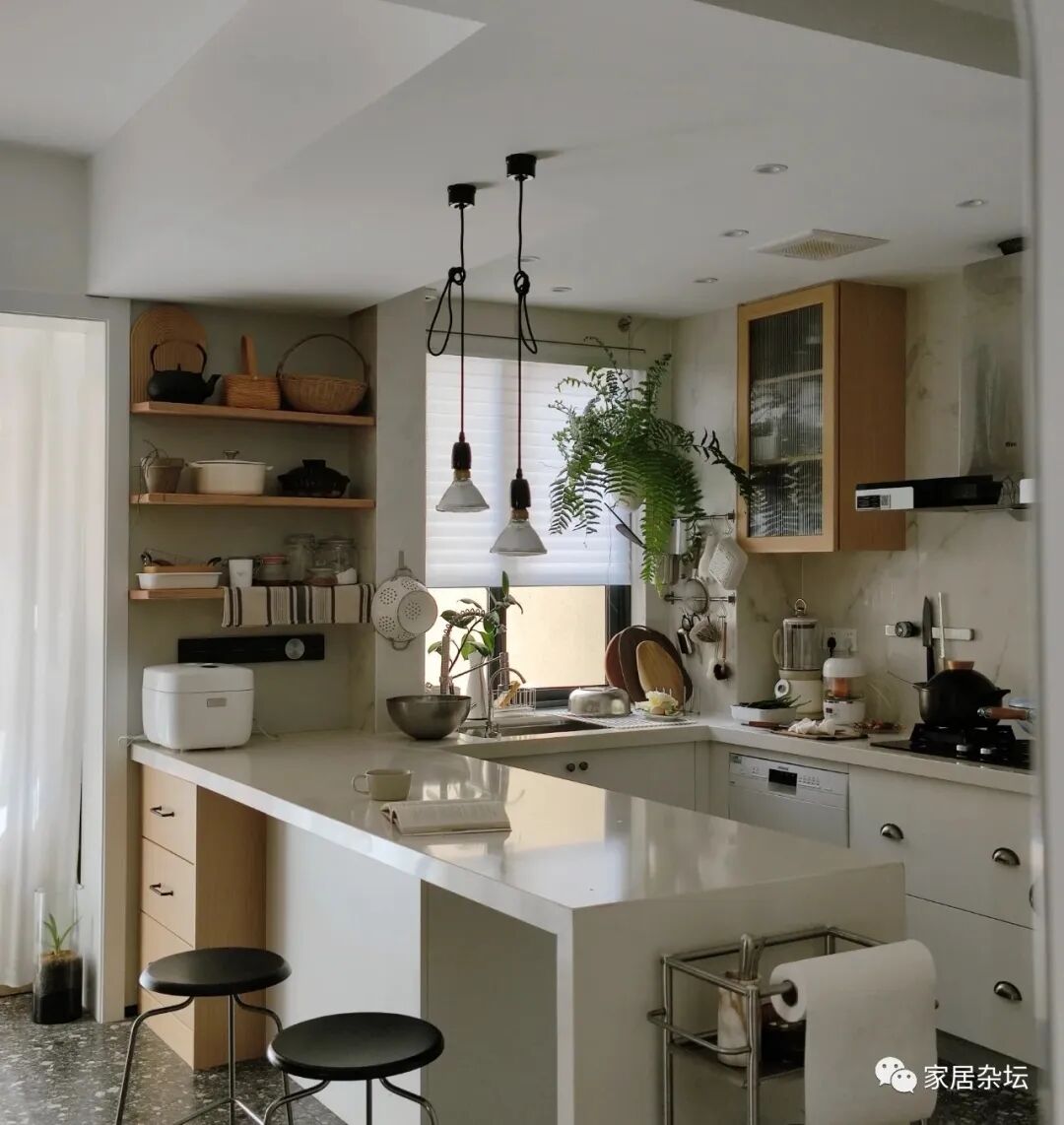 ②、如果我们家里的厨房只是用来看的,很少做饭,偶尔只是做一些西餐,那么确实可以选择开放式厨房。这类开放式厨房,就是我们常在电视里看到的。