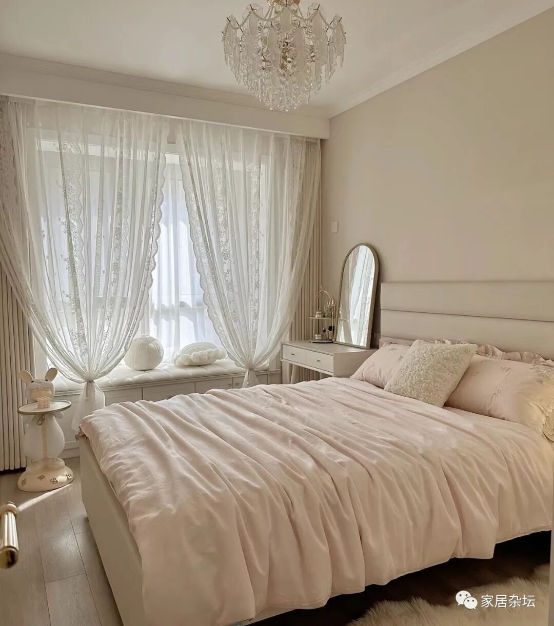 ②、对于卧室来说,尽量不要出现一些异形的家具布置。无论是圆形床又或者是贵妃椅,都是不好用的。