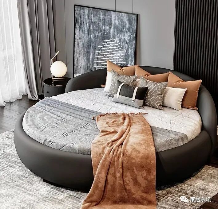 ②、圆形床还有另外一个问题,就是对卧式的布局极为不利。一个圆形床放在卧室,你会发现卧室放柜子也不好放,放书桌也不好放。