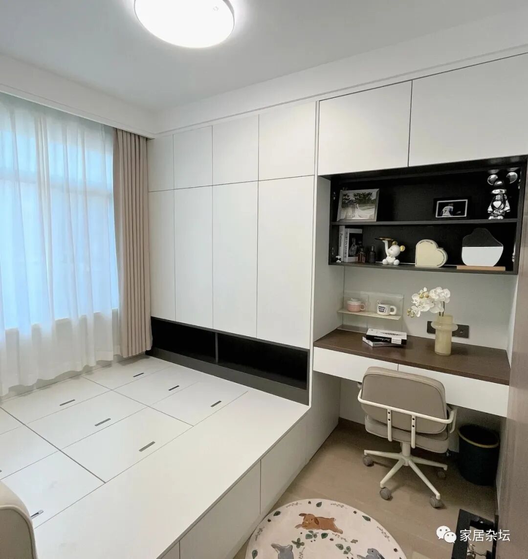 ②、如果选择榻榻米,建议大家把榻榻米的底部做成抽屉,不带升降桌。这样可以尽量防止发霉,也好用一些。