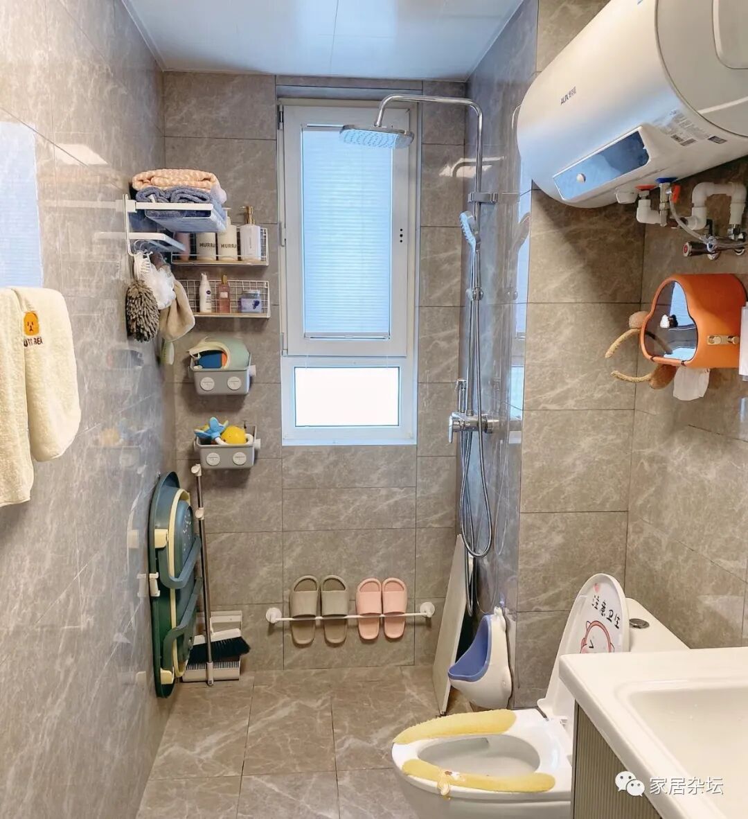 平时就是用置物架来收纳洗漱用品,收纳卫生间的其他杂物。