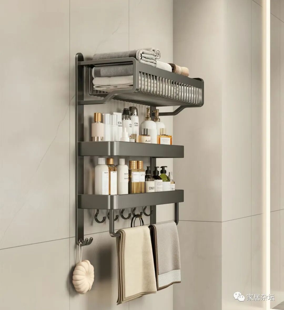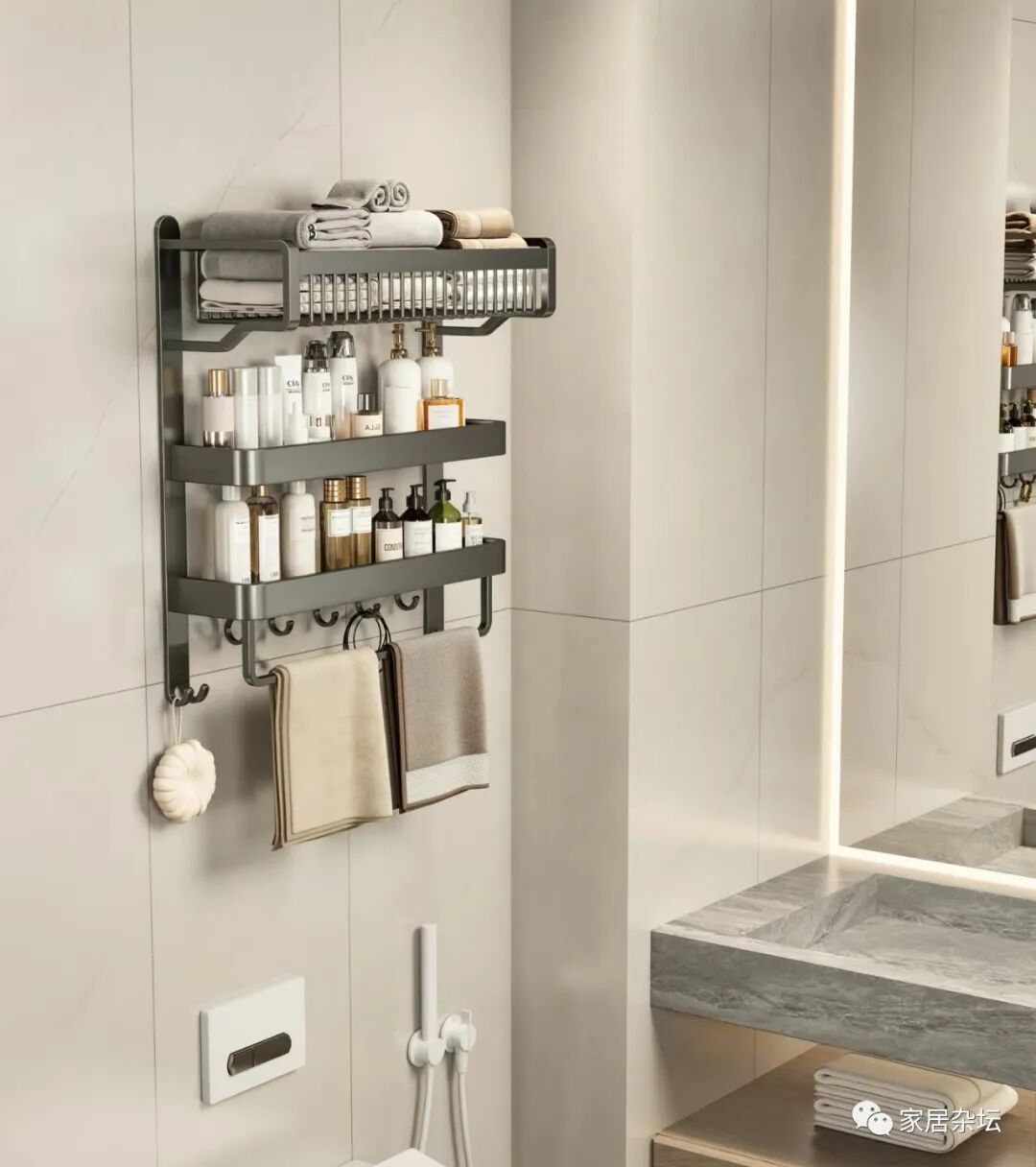 置物架安装的目的,就是来尽量增加卫生间的收纳。