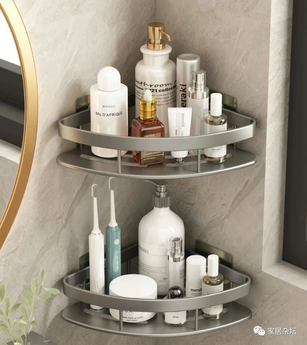 对于卫生间的置物架,一般用于淋浴房,还有就是洗脸盆台面附近的位置。