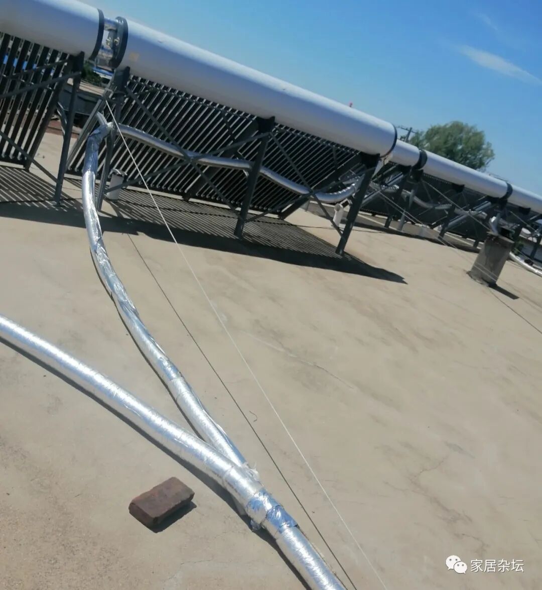 ①、如果计划在斜屋面上安装太阳能热水器,尽量把水箱放在一个平台上。这个平台,平时我们可以自己上,出问题可以方便检修。
