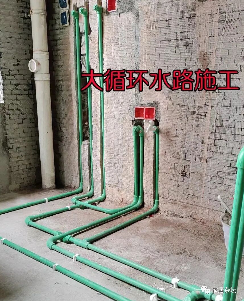 ①、管路的布置。个人建议大家的装修时布置两根管,这两根管都是热水管,保证热水可以在管路中循环。
