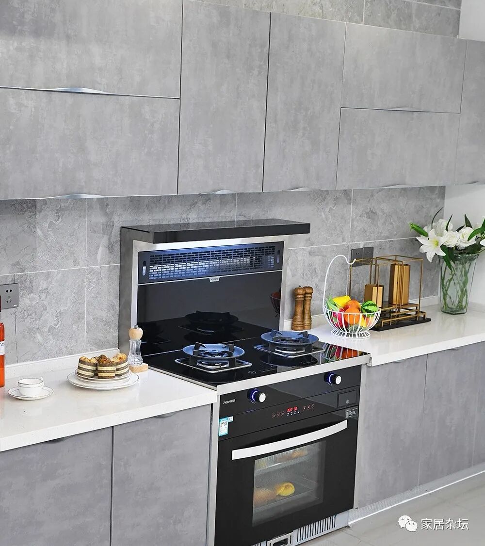 ②、如果我们担心油烟机安装不下,那么就选择集成灶。虽然多花一些钱,但是小厨房基本上也都可以用。