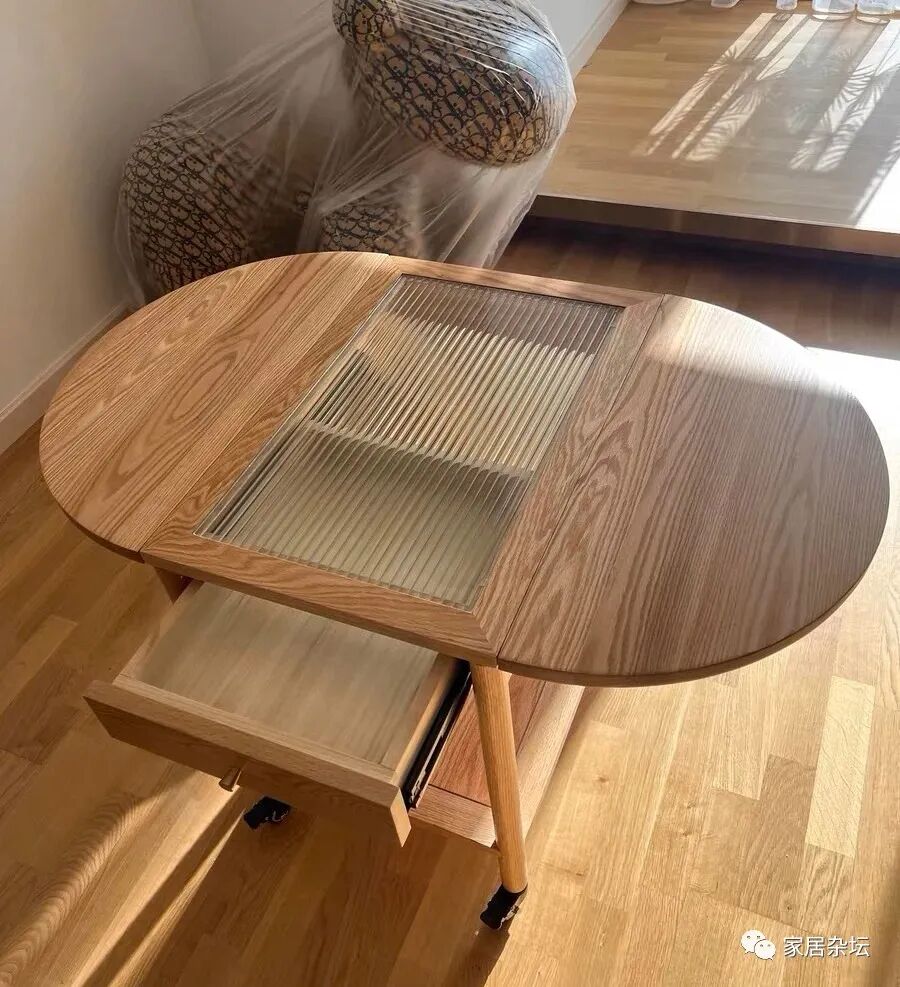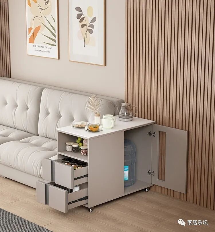 所以说,为了实现茶几的功能,而且不占地方,移动式茶几也是不错的选择。