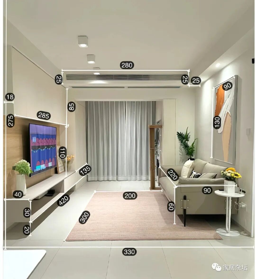 对于这些户型的建筑面积,一般也就是100平米~120平米左右。所以它的客厅面积,一般也就是20平方到30平方左右。于是就出现了问题。