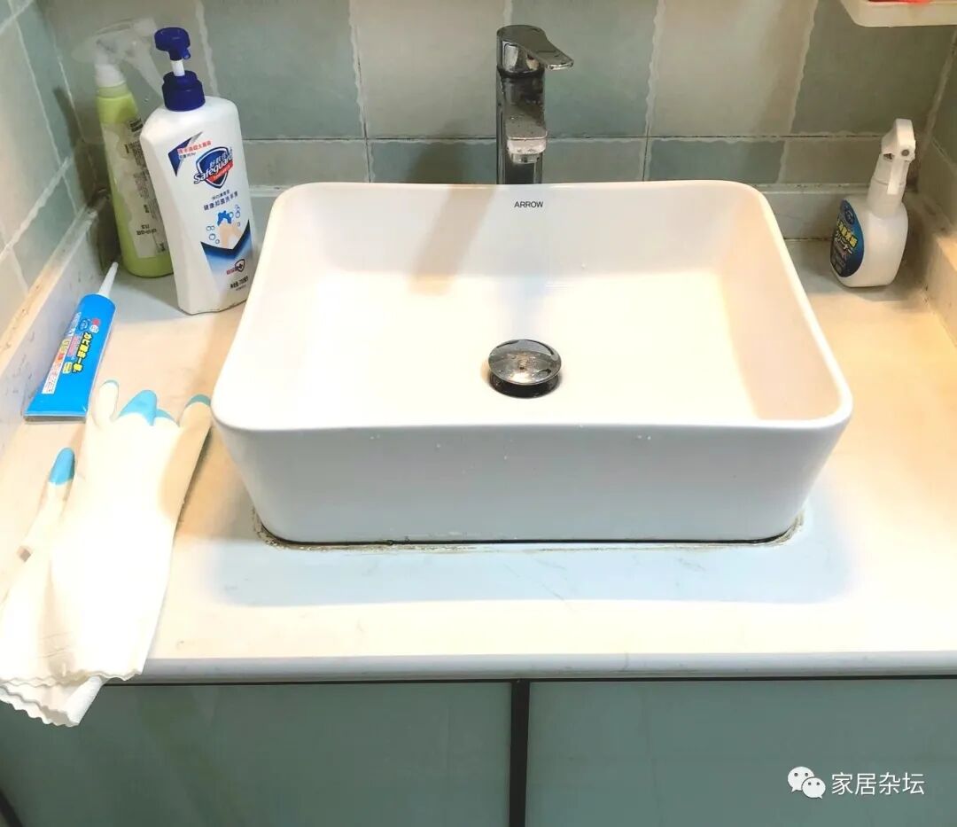 ②、手盆与台面接茬的部位,时间长了,容易发黄。严重了就出现发霉变黑, 不卫生,而且很难清理干净。