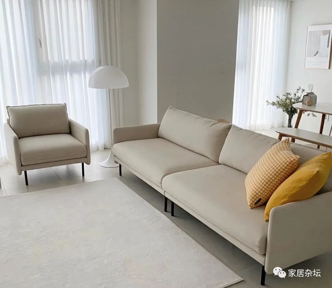 ①、对于家具,建议大家尽量选择高腿家具。无论是沙发,又或者床,都尽量距地面保证15cm以上。既干净又显得整洁。