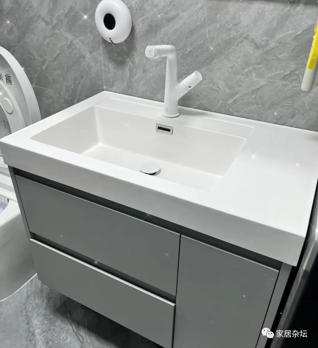 ②、对于卫生间洗脸盆,大家可以去了解一下岩板一体盆。岩板一体盆一定要选择质量好的,否则可能出现盆体脱落的问题。