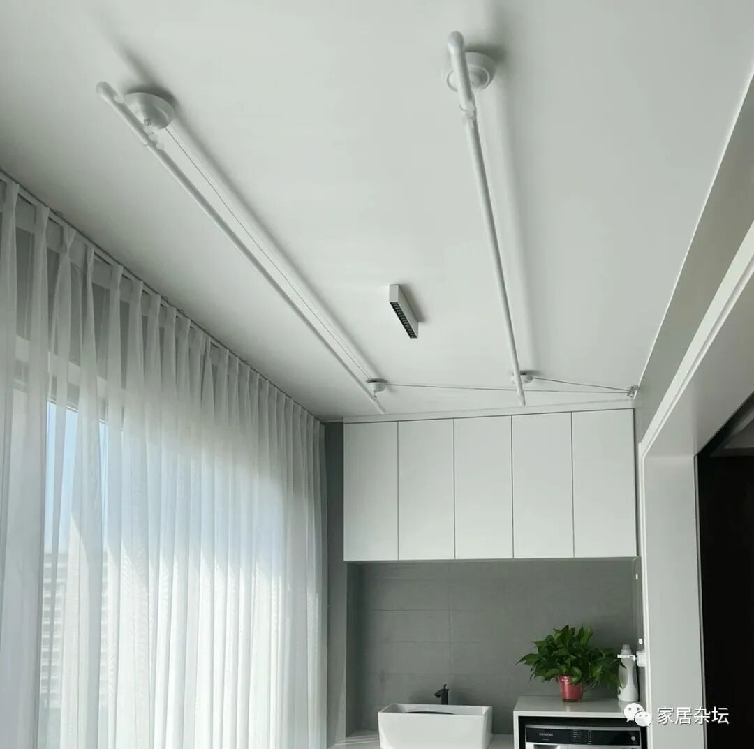 ②、如果我们的阳台空间不大,其实建议大家就安装一根晾衣杆。不要去追求电动晾衣架,因为其对阳台的尺寸要求还是比较大的。