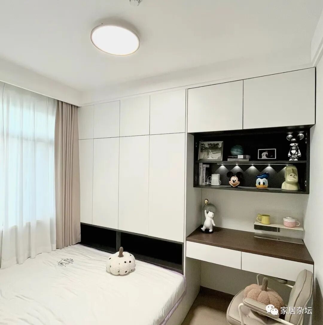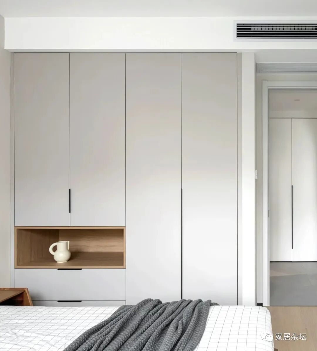 但是,你会发现摆完床以后,根本就没有这个空间,所以不建议大家安装普通衣柜。
