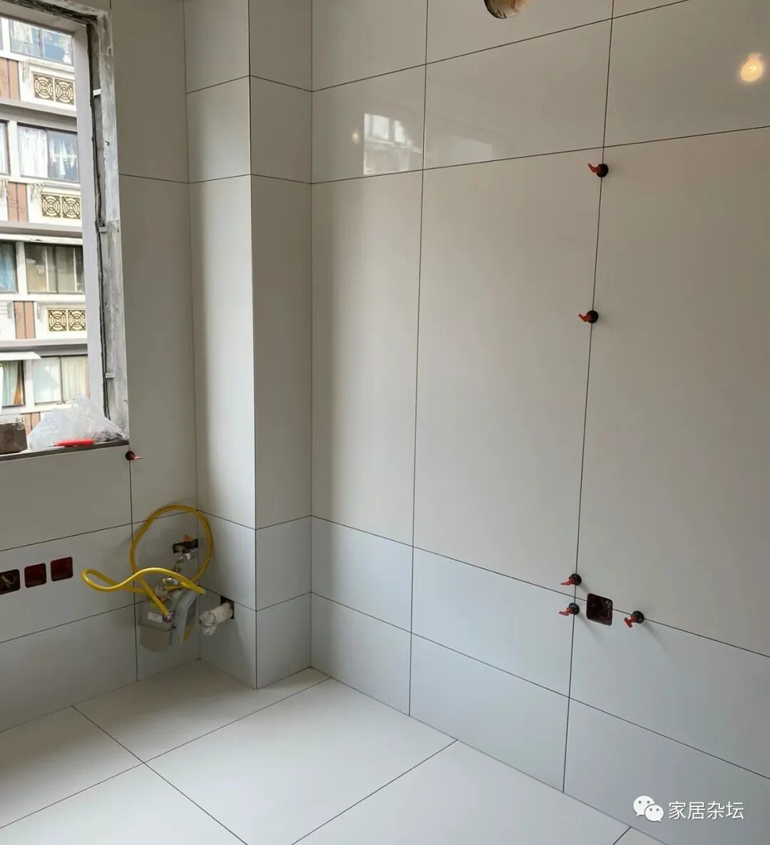 ②、施工工艺选择。对于卫生间墙面瓷砖,建议大家采取薄贴法,瓷砖之间的缝隙尽量留1mm左右,尽量不要采取无缝粘贴。