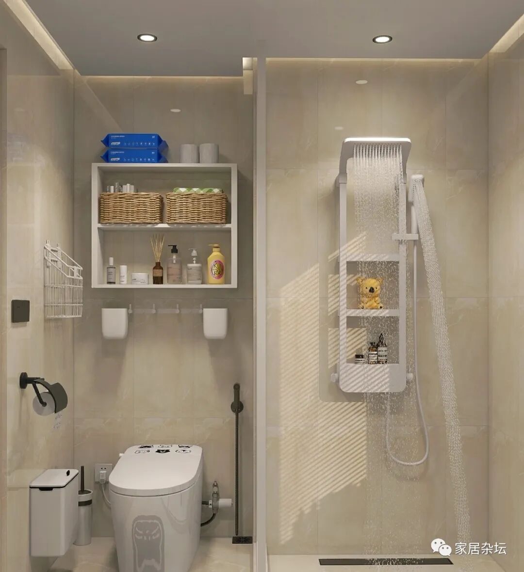 卫生间要要减少家务量,还要考虑好卫生间的收纳。说白了就是卫生间墙面位置的利用。