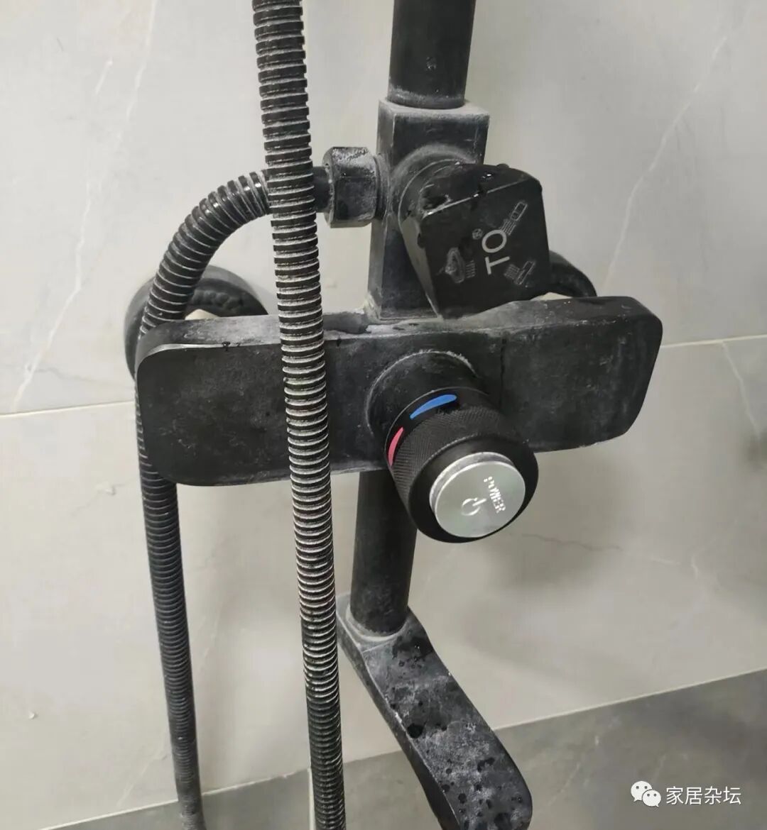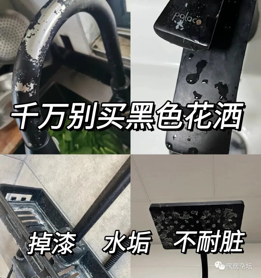 ①、黑色的卫浴五金产品,容易出现水垢,到处都是白斑。几天不清理,都是白色斑点,非常的难看。