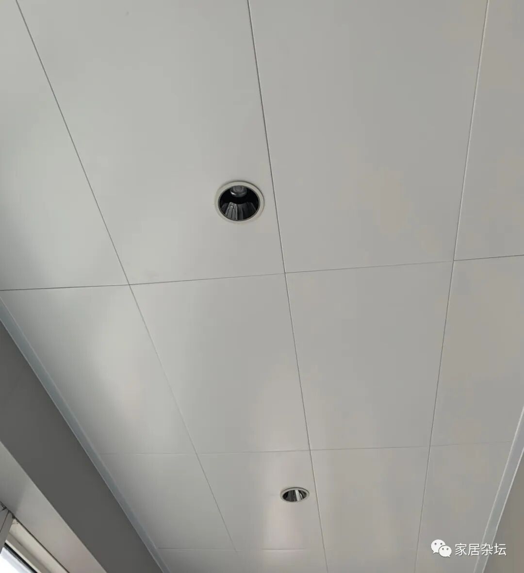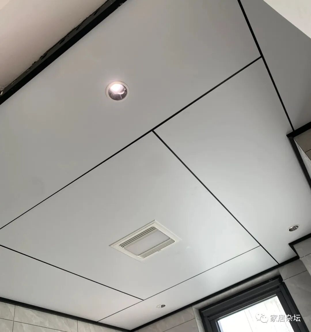 ①、对于我们大多数家庭来说,个人建议大家就选择比较常规的铝扣板吊顶。选择400×600mm的铝扣板,效果也非常不错。