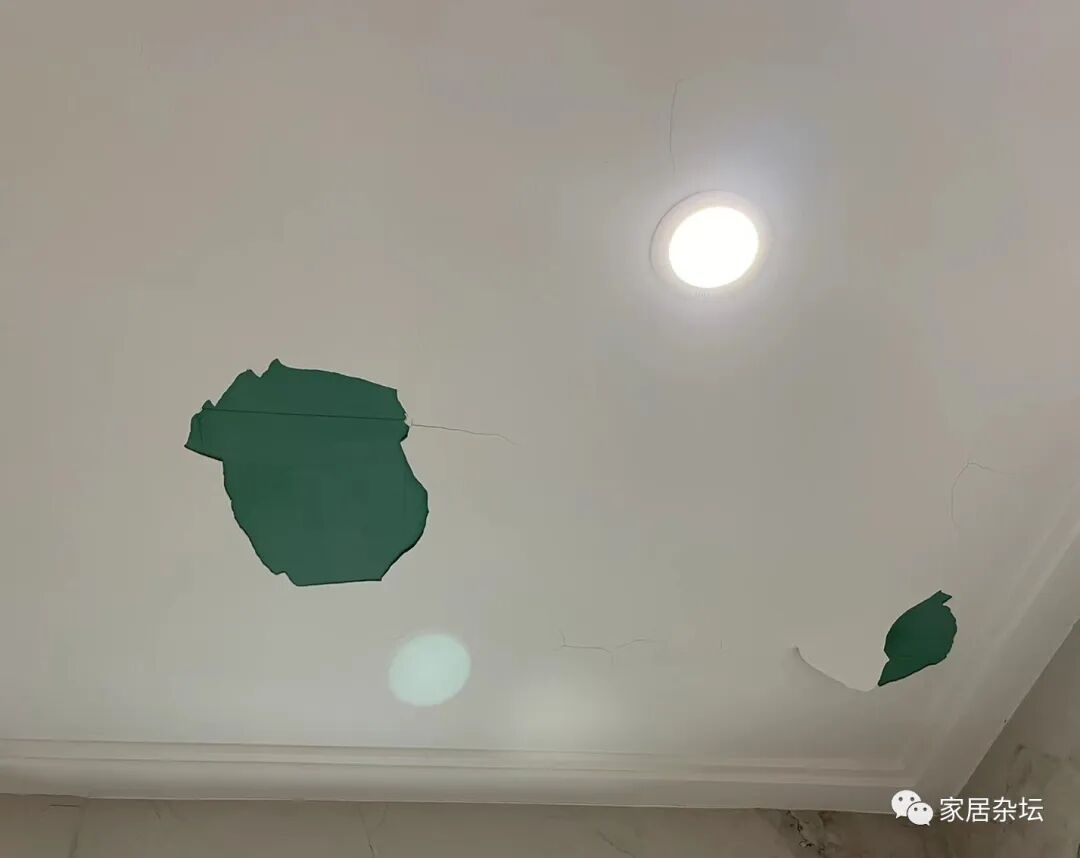 ②、楼上漏水以后,石膏板吊顶基本上就要报废了。如果楼上漏水,漏在了卫生间吊顶上面,你会发现,石膏板吊顶几乎要拆了重做。