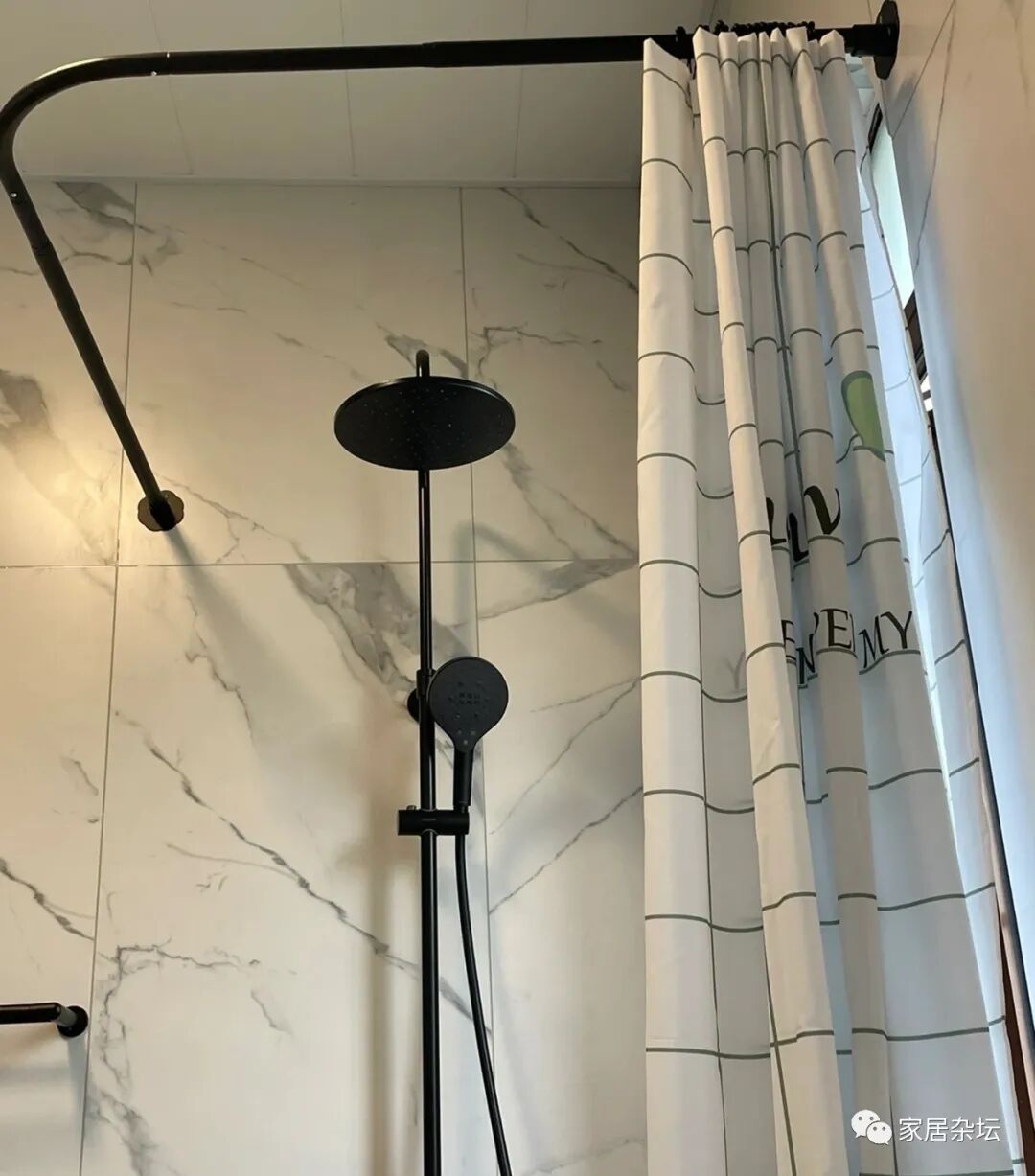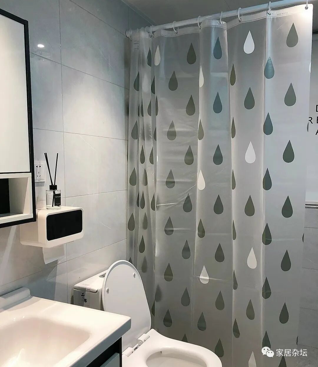 传统卫生间装修时,可能没有考虑干湿分离,也没有考虑淋浴房,于是就选择了浴帘。