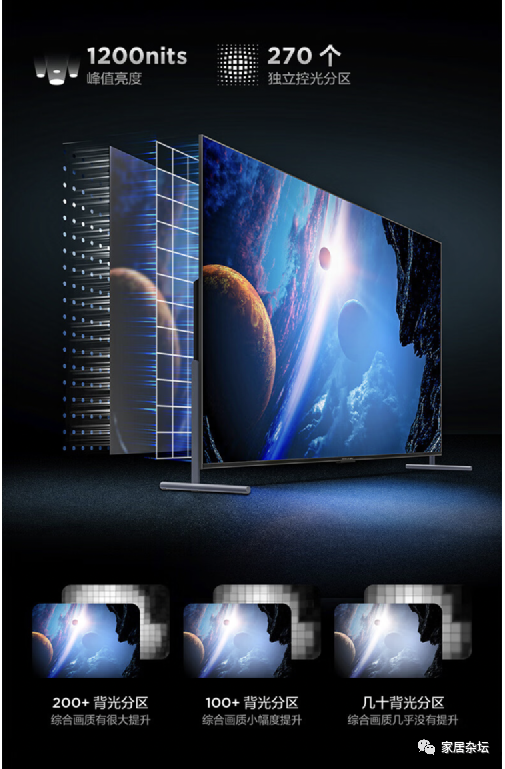 ②、画质好的原因就是雷鸟有很好的峰值亮度、背光分区,再加上高色域。对于这一点,很多电视可能又做不到。比如,雷鸟100MAX的有高达1200nits的背光分区,270个背光分区,95%DCI-P3高色域技术,在大屏的沉浸式下,又升华了声乐的观感盛宴。这个配置+价格+尺寸段,确实可以说是难逢敌手、所向披靡的存在。