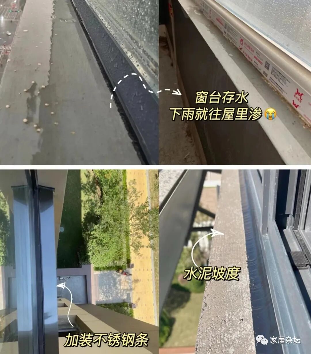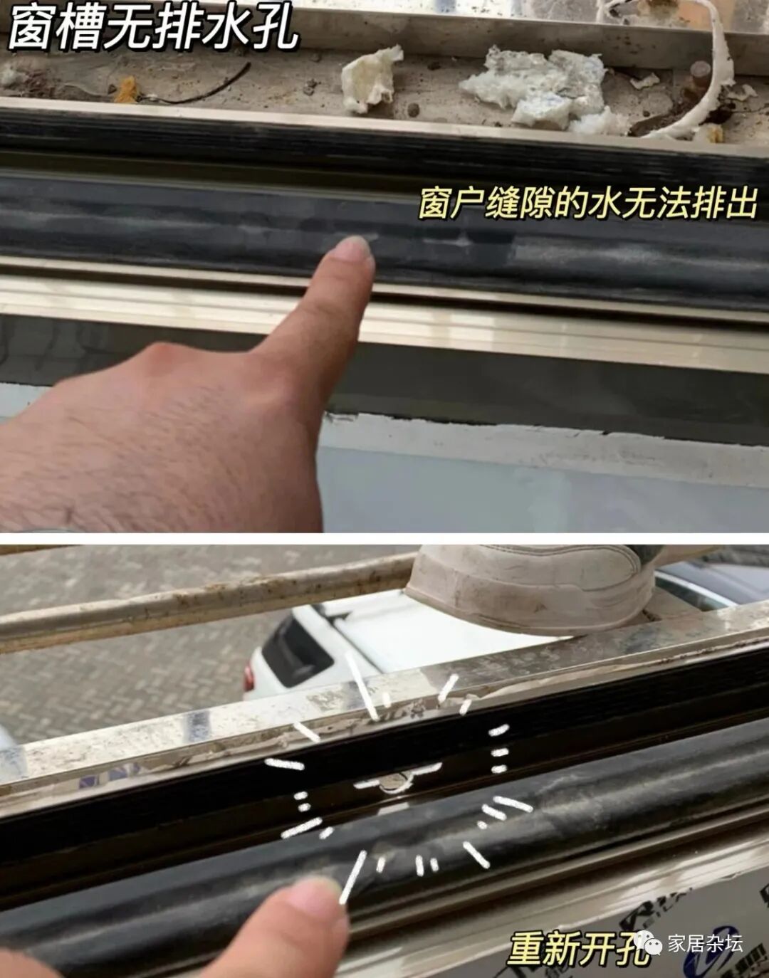 所以说,排水孔堵塞或者是没有,基本上就是顺着窗台向向里面漏水。