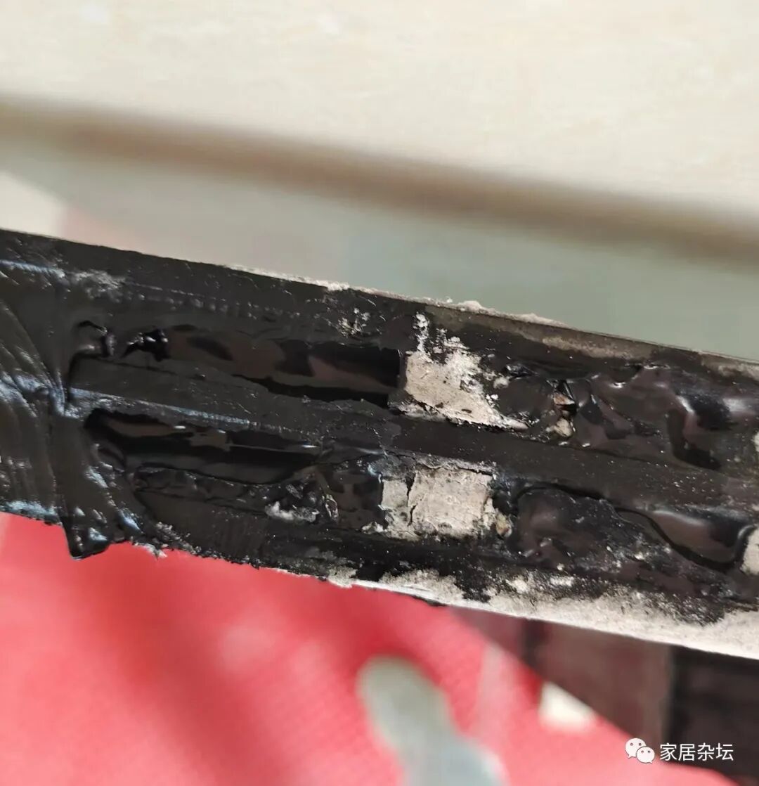 ②、全部重打。将所有的密封胶全部更换,这一点与密封胶不连续的处理方法是一样的。我们将密封胶全部拆掉以后,重新打密封胶。