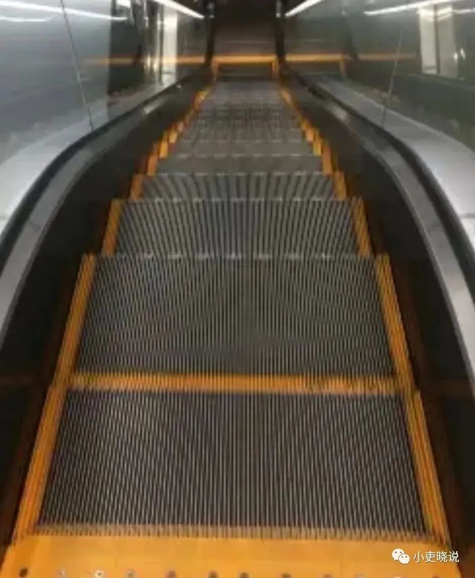 好在,我七十岁的老父亲,反应还是挺快的,尽管他看不见自己脚踩着黄线,但随着电梯下行的坡度,他感受到自己脚后跟被突然顶起、身体突然前倾时,急忙用左手使劲抓住了扶梯栏杆,右手拉紧行李箱,迅速将自己的双脚往前挪了十几厘米,站在了扶梯台阶的中心。