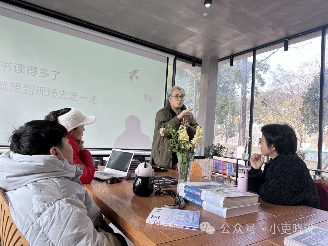 周鹏飞老师的脑袋就像一座小型的图书馆。我坐在离他最近的地方,我看到他只有简单的几张PPT和照片,每个页面只配了诸如“有了书本力量的加持,旅行就会与众不同。”这样少的文字。