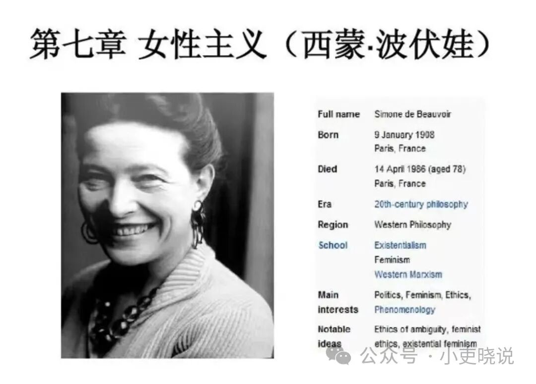 波伏瓦是谁?一个女人。《第二性》([法] 西蒙娜·德·波伏瓦 著)的作者”波伏瓦“。