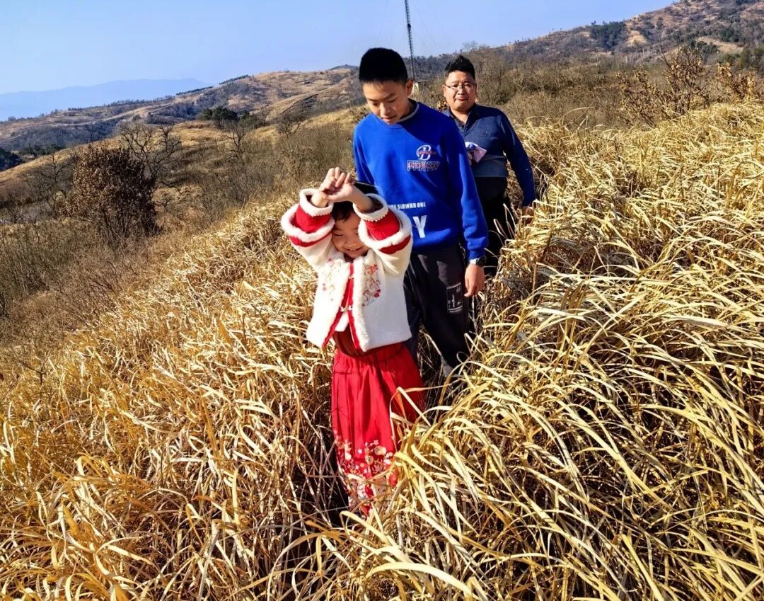 山顶上那条小道,因为近年少有人走,茅草长得比孩子还高。我凭着记忆找到了那条道,带着他们“走最原始的路”。