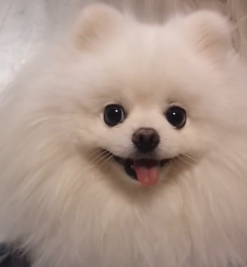 理发前:这小白狗,毛真顺溜,长得挺水灵的,笑起来跟个小狐狸似的!
