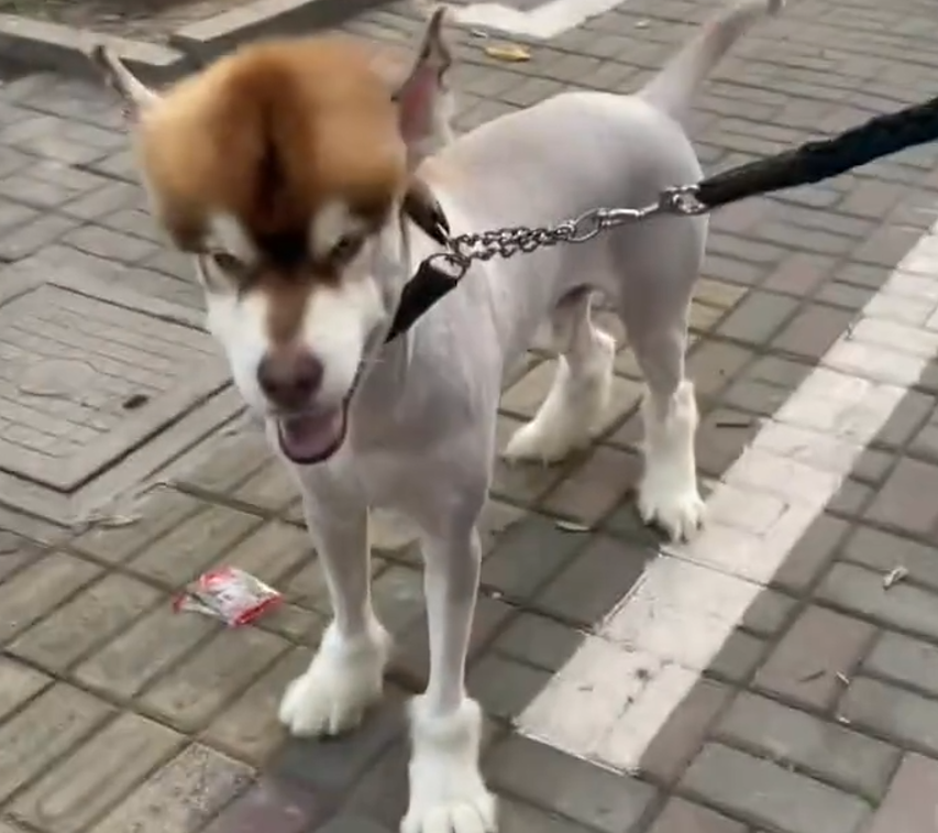 理发后:这狗子是去理发了吗,这是要剃度出家吧。网友:这狗真丑!