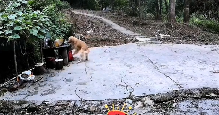 10多分钟后,天下起了小雨,狗子叼着菜篮子,主人打着伞,一人一狗在雨中跑回家,这一幕看得我心里暖暖的,真是太治愈了。